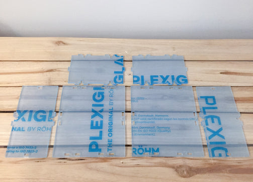 Im Lieferumfang befinden sich Markenacrylglasplatten von PLEXIGLAS®, Schrauben und Muttern aus Edelstahl.