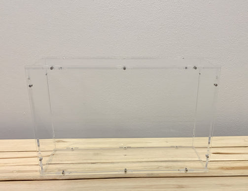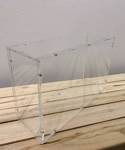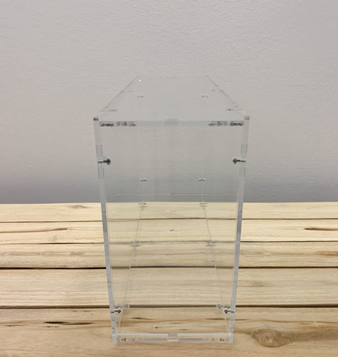 Die Acrylbox ist noch nicht zusammengesteckt und verschraubt. Vor dem Aufbau bitte unbedingt die Schutzfolien von beiden Seiten entfernen.